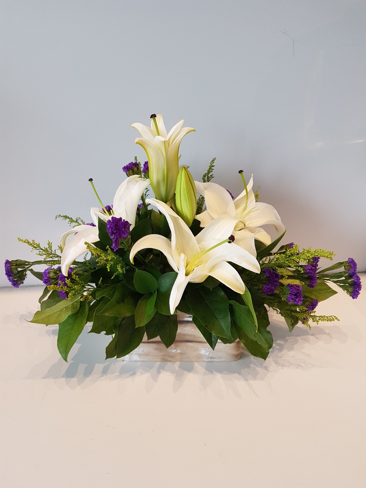 Product code: FL 22777 Beautiful centerpiece with white lilies in long container. $125 Order now Sender Recipient Add a postcard (free) By clicking the button, you agree with the terms of the privacy policy Related products Order now Garden composition FL33111 $125 Order now “CLASSIC # 3” Arrangement in box . $189 Order now Glocery baskets FL55333 $149 Order now Composition in conteiners FL22111 $185